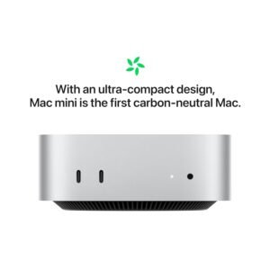 - SIZE DOWN. POWER UP — The far mightier, way tinier Mac mini desktop computer is 12.70 x 12.70 cm (5.00″ x 5.00″) of pure power. Built for Apple Intelligence. Redesigned around Apple silicon to unleash the full speed and capabilities of the spectacular M4 chip. With ports at your convenience, on the front and back.