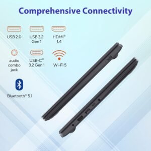 - I/O Ports : 1x USB 2.0 Type-A (data speed up to 480Mbps), 1x USB 3.2 Gen 1 Type-A (data speed up to 5Gbps), 1x USB 3.2 Gen 1 Type-C (data speed up to 5Gbps), 1x HDMI 1.4, 1x 3.5mm Combo Audio Jack, 1x DC-in