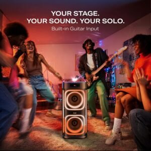• Guitar Input: Let your inner rockstar shine! Plug in your guitar using the dedicated input and perform live for your friends and family, right from your living room or backyard.