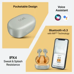 • IPX4 Splash Resistance: Show off your Airdopes without worrying about damage! IPX4 rating keeps sweat and water splashes away for matchless grooving at the gym, poolside, beaches, etc.