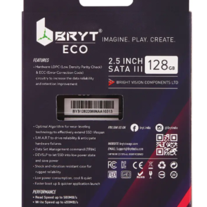 High-performance Storage – Use BRYT 128GB SSD 2.5 Inch SATA Internal Solid State Drive for high speed and reliable performance with impressive sequential read speed up to 500MB/s and write speed up to 450MB/s, you can experience faster boot-up and load times for your computer., Give your PC new life with capacities of up to 128 GB and high endurance, plus low power draw for more laptop life between charges and reduced vibrations compared to HDDs., Improve Overall System Responsiveness-Sequential read/write speeds up to 500/450 MB/s, enhance your system’s overall performance for gaming, rendering, and processing. 4 times faster than a HDD., Solid-state drives are the next evolution of PC storage and run faster,quieter and cooler than the aging technology inside hard drives.SSDs are also more durable and more reliable than hard drives., Power your old system Our SSD comes with a 2.5 Inch form factor and SATA III interface,upgrade your computer’s storage today and enjoy improved performance and reliability.