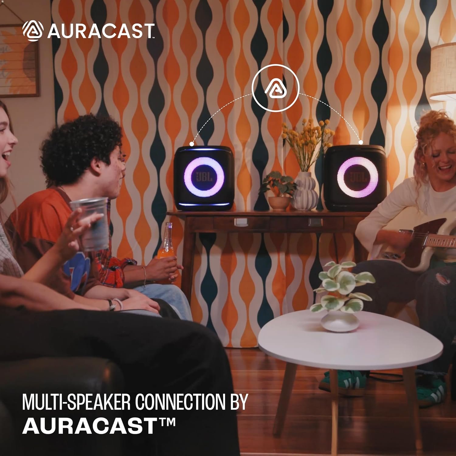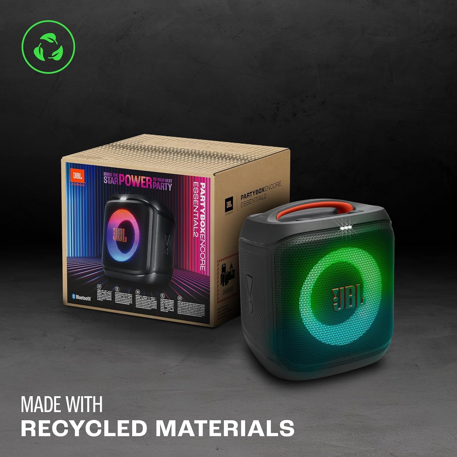 • Multi-speaker connection by Auracast Bigger parties call for even bigger sound. Pair two PartyBox Encore Essential 2 for true stereo vibes via Auracast, or connect multiple JBL Auracast-enabled speakers wirelessly and let your music grow with your party size
