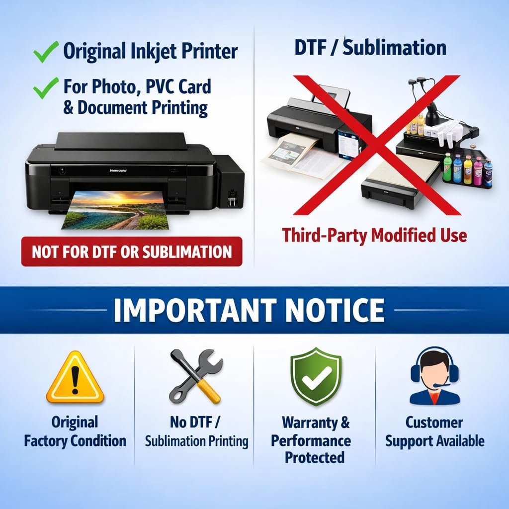- Not designed for DTF or Sublimation Printing without third-party modification Modification may affect performance and warranty